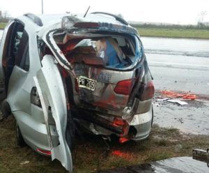 El siniestro ocurrió en el km 63, altura de Monje, en sentido sur norte, alrededor de las 11.40. Pese al fuerte impacto, el vuelco y a los graves daños materiales, no hubo lesionados de gravedad.