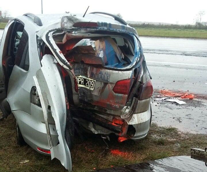El auto transportaba diferentes elementos, entre ellos pintura, que se derramó sobre el vehículo, marca Volkswagen, perteneciente a la empresa CIALES (Centro de Inseminación Artificial). También transportaba semen de bovino en dos conteiner estando con un químico -nitrógeno, los cuales sufrieron alteración y se derramó.