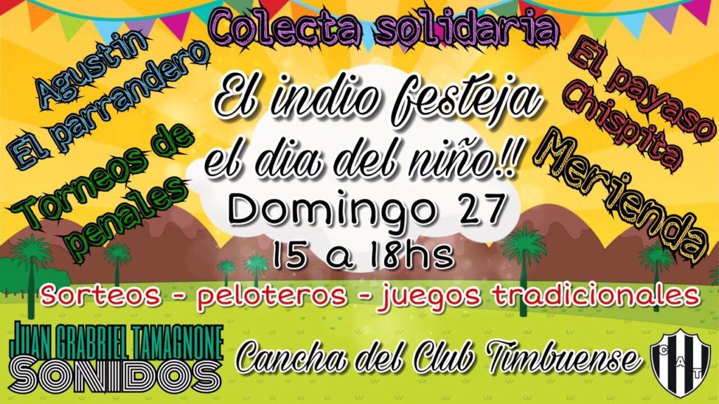 La cita es de 15 a 18 horas en la cancha del Club Atlético Timbuense, donde además de haber buena música, diversión, merienda, sorteos, peloteros y juegos, también habrá lugar para ayudar a quienes más lo necesitan.
