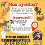 Este sábado 20 de enero, desde las 7 horas, en el predio de la unión (zona de semáforos, casa amarilla), se realizará una nueva jornada de castración gratuita en San Genaro.