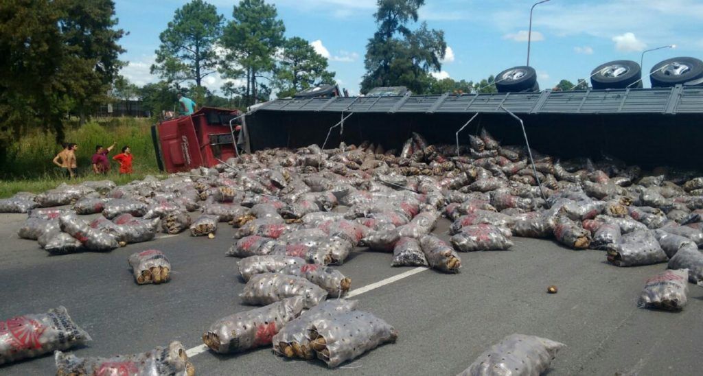 Un nuevo accidente en la autopista Santa Fe-Rosario dejó el asfalto de la mano que se dirige hacia la capital cubierto de papas, en horas del mediodía de este domingo. Previamente, un automóvil chocó al camión que terminó volcando.
