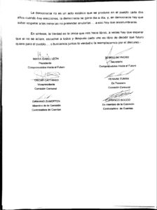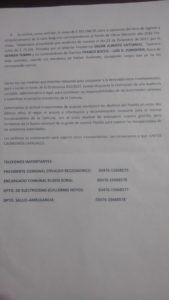 Ante esto, Oscár Cattaneo, en conjunto con el grupo «Comprometidos hacia el futuro», emitieron la contestación firmada por los seis integrantes, entre ellos, el ex presidente comunal que expuso su postura ante las acusaciones.