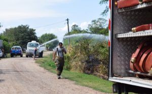 Los Bomberos Voluntarios de Oliveros junto a los camiones cisternas de la Comuna de Maciel combatieron el fuego hasta que lograron controlarlo, evitando así que llegue a las construcciones del geriátrico, próximas a este lugar.
