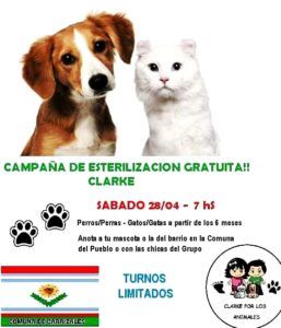«Anotá a tu mascota o a la del barrio en la comuna del pueblo o con las chicas del grupo (Clarke por los animales)», indicaron desde la organización.