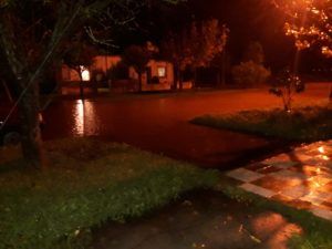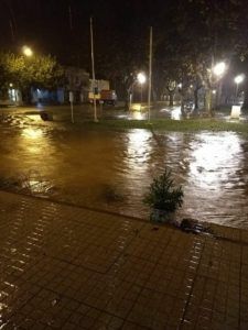 El escenario en gran parte del pueblo es de agua de cordón a cordón e incluso a llegado a las veredas. Este fenómeno extraordinario no permitió que el agua llegue a escurrir rápidamente. Según el pluviómetro de la Comisaría local, cayeron más de 110 milímetros en las últimas horas.