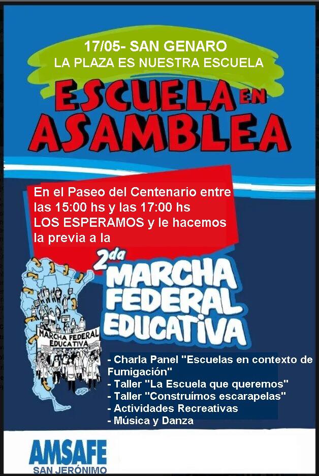 Este jueves 17 se va a desarrollar la jornada escuela en asamblea en la ciudad de San Genaro realizando la previa a la segunda marcha federal educativa.