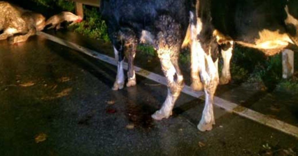 El vehículo se dirigía en sentido Serodino – Totoras cuando el conductor fue sorprendido por los animales que se encontraban sueltos sobre la calzada y no logró esquivar.