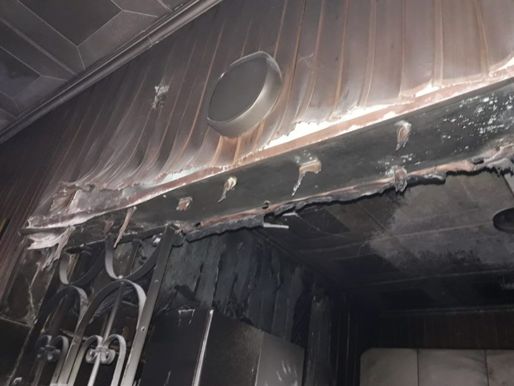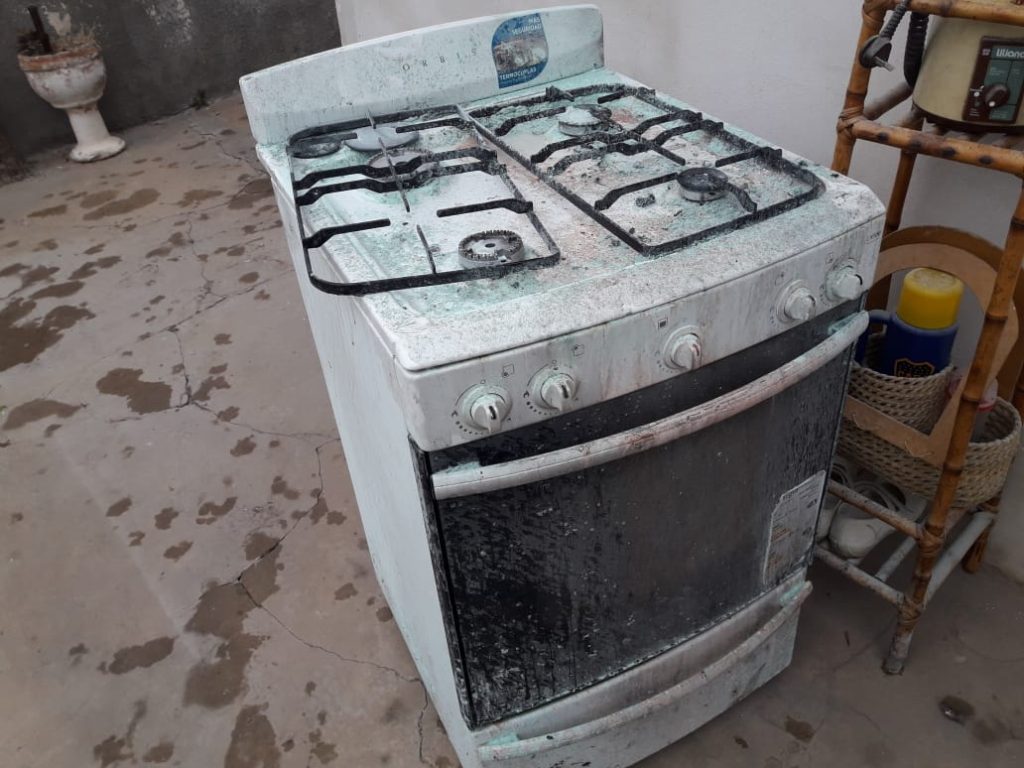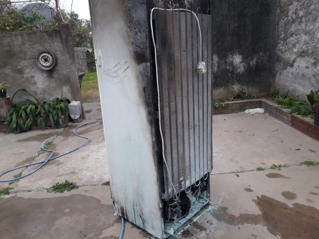 Luego de apagar el foco ígneo, los daños comenzaron a verse en medio del humo y se vio afectada la cocina, la heladera, paredes, techo, mesada, extractor y un aire acondicionado.