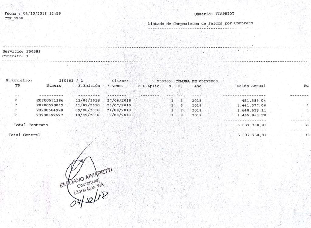En tanto, Oliveros Gas anunció a sus usuarios que tras la muerte de quien era el encargado de la firma, Rubén Stagno, se había demorado la emisión de boletas bimestrales y que ya se estaban repartiendo las correspondientes a los meses de consumo julio y agosto.