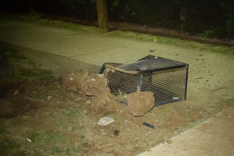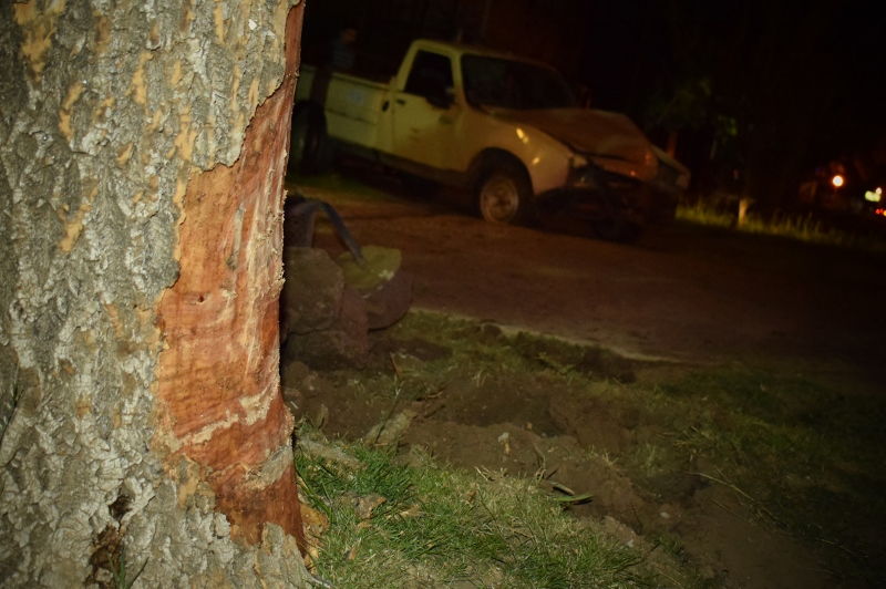 Minutos después de la hora 20 una camioneta Peugeot 504 que viajaba sobre la Ruta 11, en cercanías del KM 366, en sentido norte sur, despistó, rozó un árbol, arrancó un cesto de basura y terminó chocando contra el portón de un terreno privado.