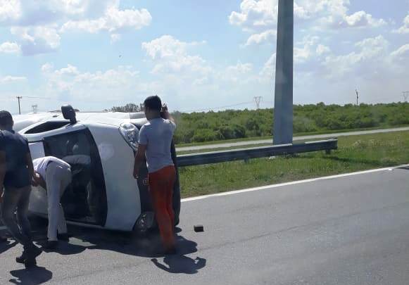 Por causas que se tratan de establecer, el rodado despistó y volcó, quedando sobre la cinta asfáltica. Afortunadamente no fue impactado por otro vehículo, lo que podría haber terminado en una tragedia.
