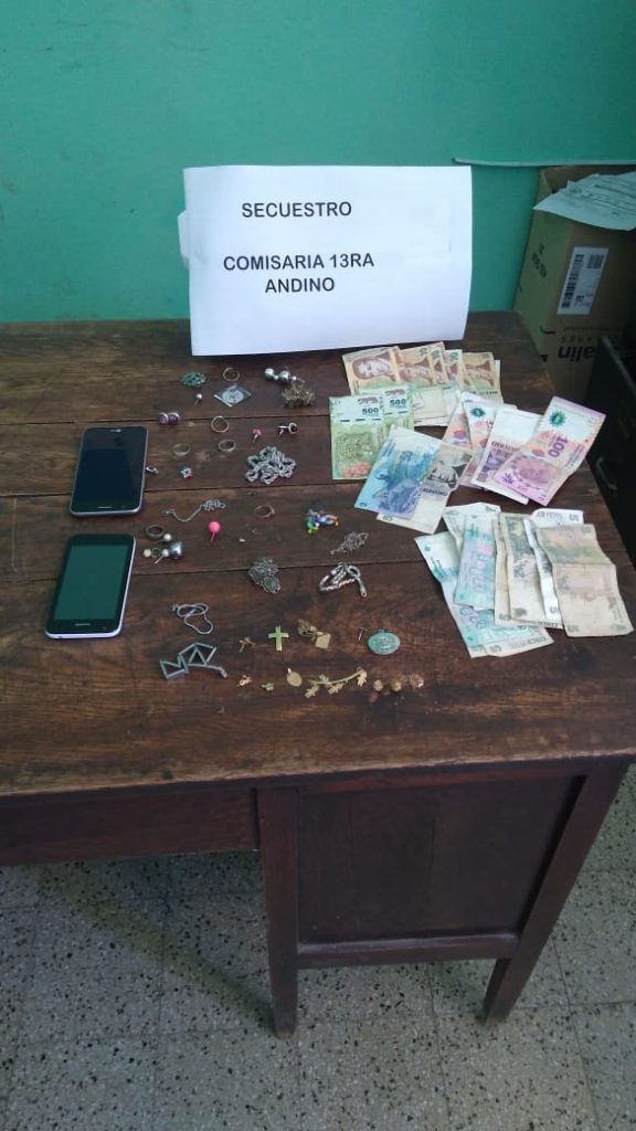 Le habían sustraído dos teléfonos celulares, dinero en efectivo y varias joyas. Luego, tras el rápido accionar policial y por la presencia de testigos, procedieron a la detención del autor de los hechos y al secuestro de la totalidad de los elementos robados.