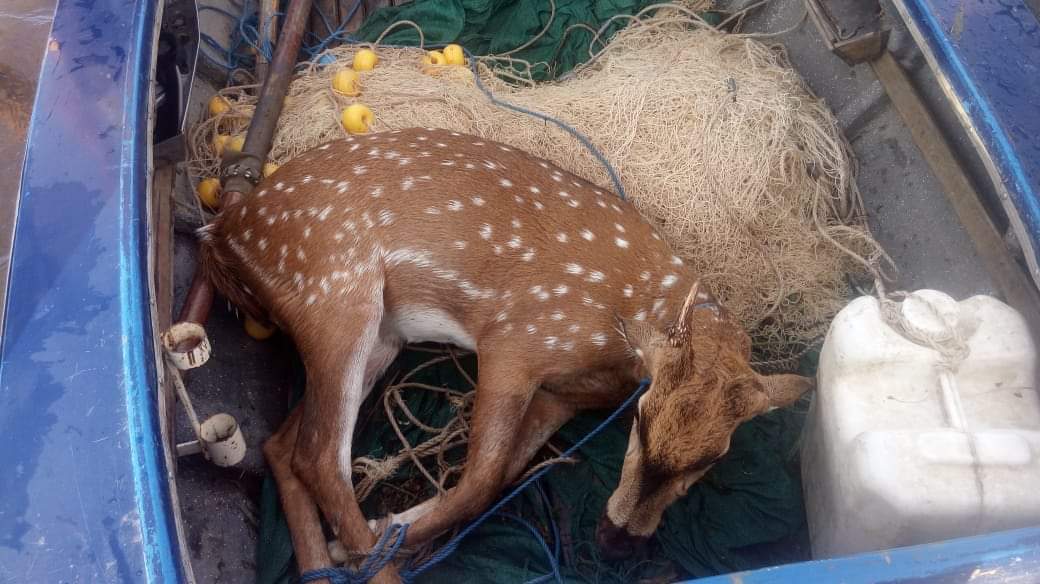 Un ciervo pintado fue encontrado el sábado en horas de la noche nadando en medio del río, por un pescador de la Boca de Monje.