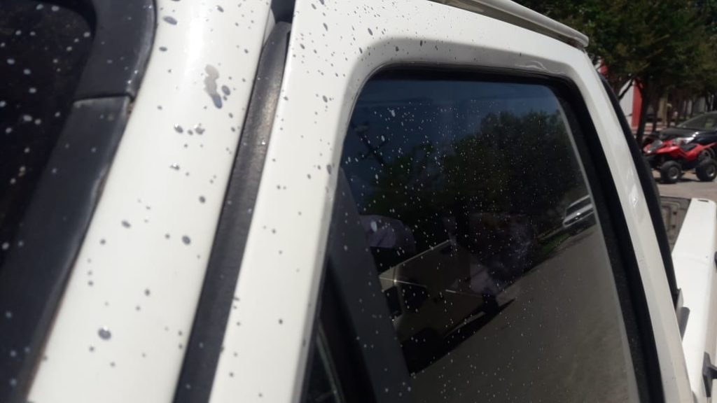 Al salir de la sede comunal se dirigió hacia su vehículo. Fue allí cuando advirtió que el mismo presentaba salpicadura de pintura de color gris en distintos sectores.