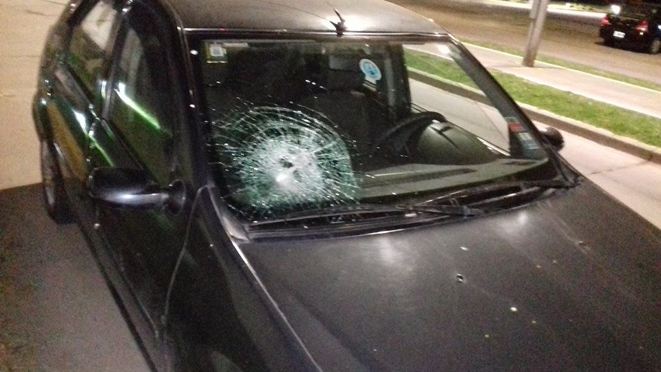 «Éramos cuatro para hacer la misma denuncia», afirmó Adrián, a quien un cascote le destrozó el parabrisas. Afortunadamente logró mantener la dirección de su auto y no se detuvo.