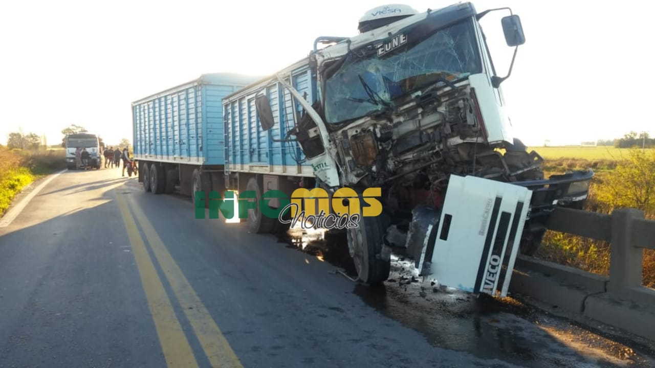 Al llegar al estrecho puente que, producto de un choque anterior ya perdió hasta sus barandas de contención, el primer camión aminoró su marcha y otro que venía detrás no pudo frenar y lo terminó impactando.