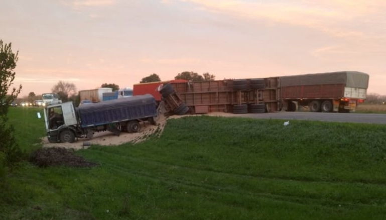 El vehículo de mayor porte volcó su acopado y todo el cereal que llevaba quedó tendido sobre el asfalto, por lo cual, el tránsito debió ser interrumpido.