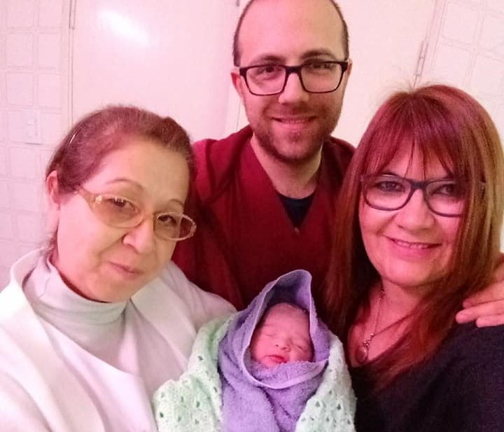 El recién nacido se llama Luciano Gabriel y pesó 3290. Fue asistido por las enfermeras del hospital local Ana Rodríguez y Nora Ramos y el Dr. Gabriel Keppl.