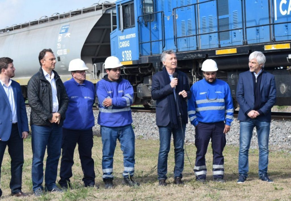 «Significa que se puede, es empleo presente y futuro. Son más de 800 kilómetros de vías y vamos por mil más», afirmó el mandatario nacional que se trasladó en helicóptero desde Rosario a la región y llegó al lugar del acto, a la vera de la Ruta 11 frente al puente del canal Serodino, en una formación del Belgrano Cargas.