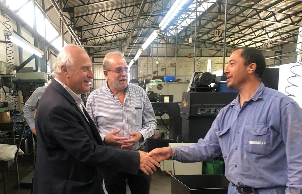 Presente y sin aviso, Miguel lifschitz centró su visita en Fabrimac SRL de Roberto Pedriel, empresa a la que denominó como «una pujante pyme metalúrgica con 30 operarios».