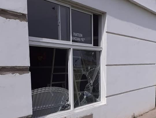 Según el informe aportado a Info Más, se rompieron los vidrios de uno de los ingresos a zona privada, otros de distintos panteones como así también se encontraron destrozos de lápidas.