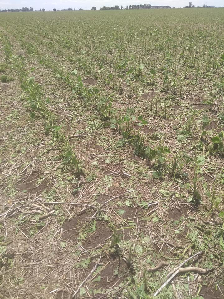En los campos del distrito sur de Salto Grande, por ejemplo, el granizo realizó estragos en los campos sembrados por una incipiente soja.