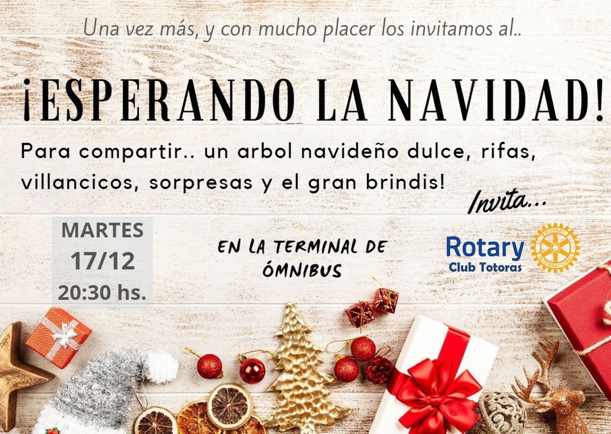 Además habrá rifas y sorpresas y un brindis colectivo deseando una hermosa Navidad para todos los que la celebran. Desde el Rotary también invitan a llevar un adorno navideño para intercambiar por galletas y decorar el arbolito.
