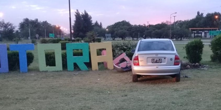 El episodio ocurrió alrededor de las 6 de la mañana y tuvo como protagonista a un Chevrolet Corsa Gris, que terminó incrustado contra las letras de cemento que forman la palabra Totoras sobre la rotonda.