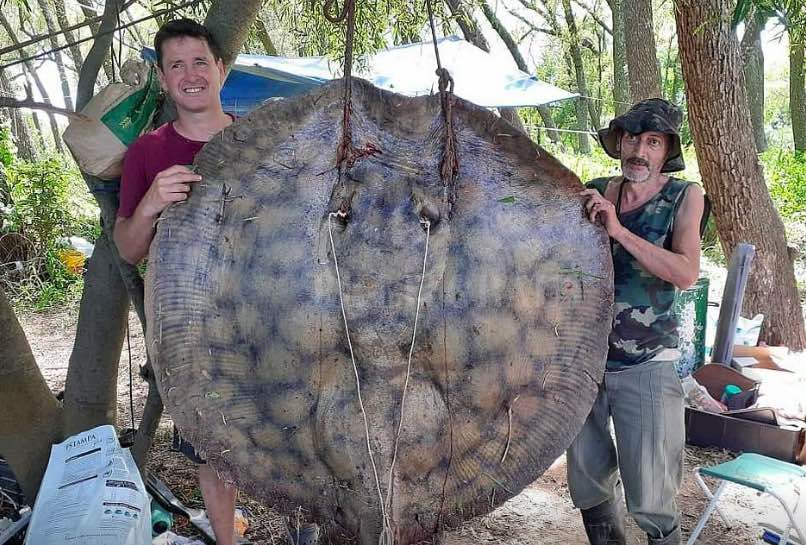 Vale destacar que pese a la inmensidad del animal, no se trata de un peso récord aunque sin dudas es una increíble raya hallada en Puerto Gaboto.