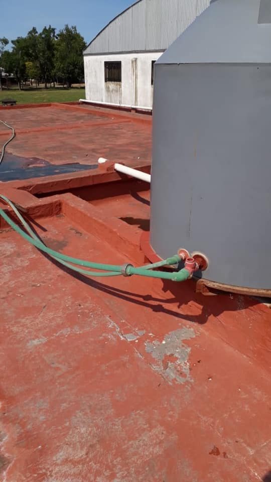 Según se puede apreciar en las imágenes aportadas por Radio Maciel 94.1, se ocasionaron daños en el tanque de agua potable y su correspondiente cañería.
