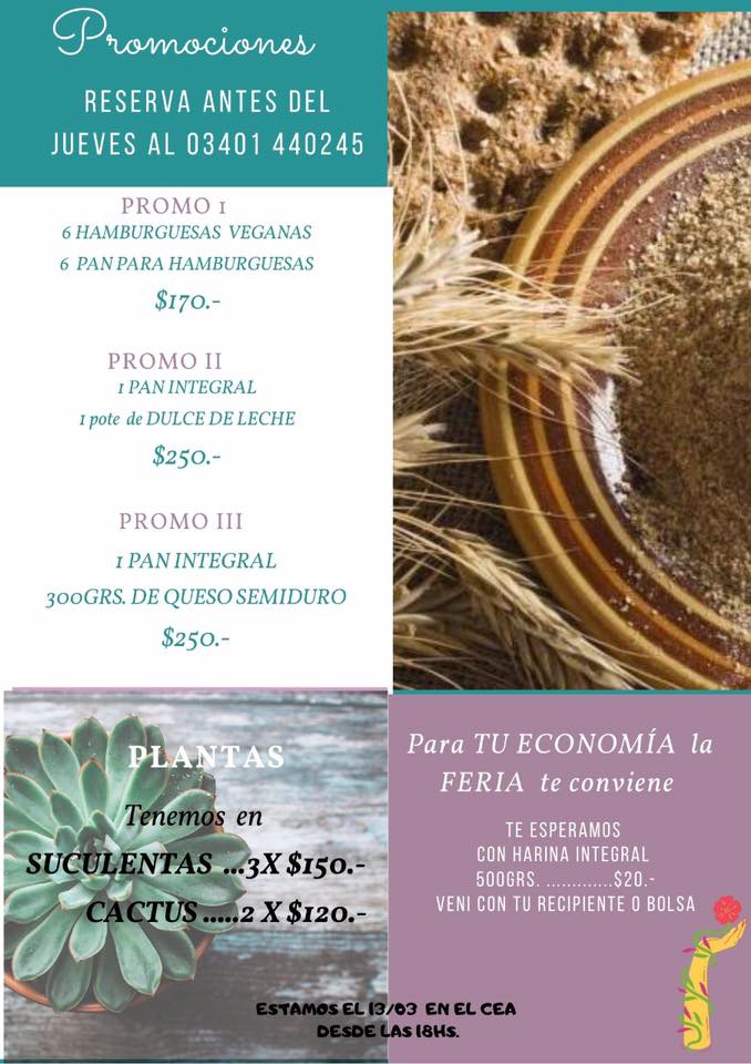 En esta oportunidad se ofrecerán: verduras frescas, dulces caseros, tortas y panes, alfajores con algarroba, dulce de leche, quesos, canelones de verduras, pre pizzas con harina integral, leche pasteurizada, cítricos, harina agroecológica, pollitos BB, semillas, plantines de aromáticas, de huerta, cremas, hamburguesas veganas, jabones elaborados con hierbas medicinales, etc.