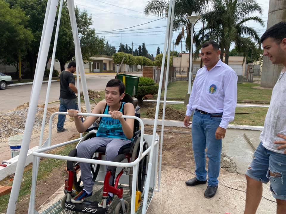 Con sonrisas y emoción, se dejó lista esta hamaca adaptada que desarrolló un emprendedor local, Jorge Cossia, a pedido del municipio. Una pequeña obra que dice mucho y que pone trae un poco de igualdad para todos.