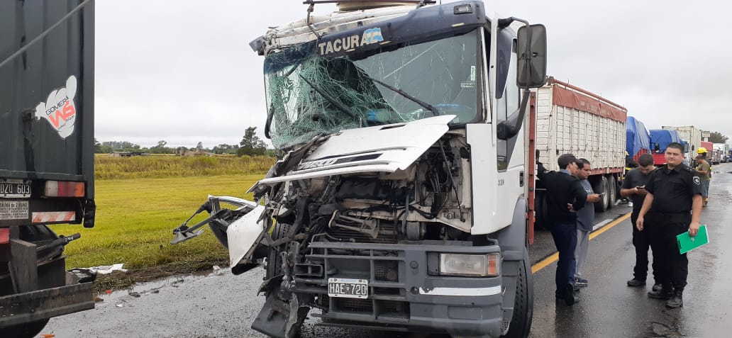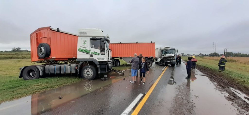 El primer rodado, un camión lechero, era conducido por un hombre de Centeno cuando fue impactado por otro de Campana y en consecuencia, por un tercero, oriundo de Balnearias (Córdoba), que no pudo evitar la colisión sobre la calzada mojada.
