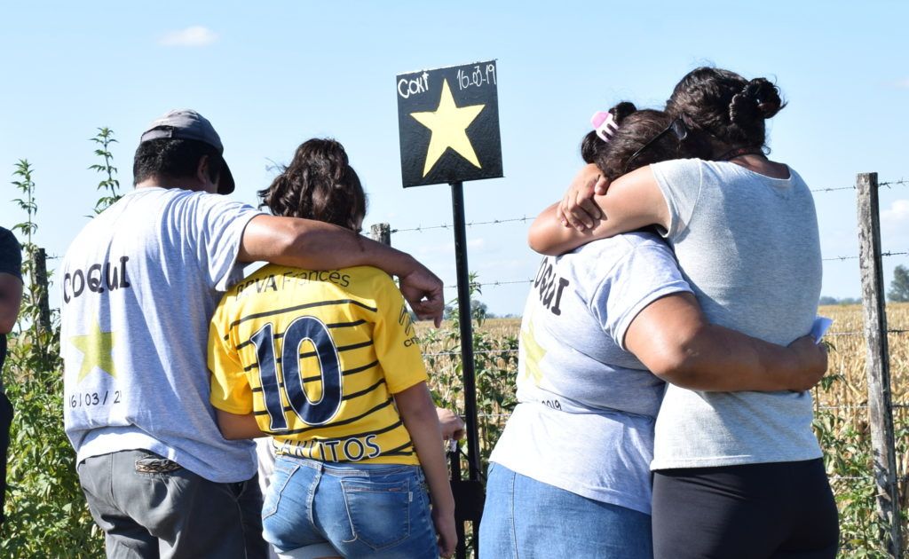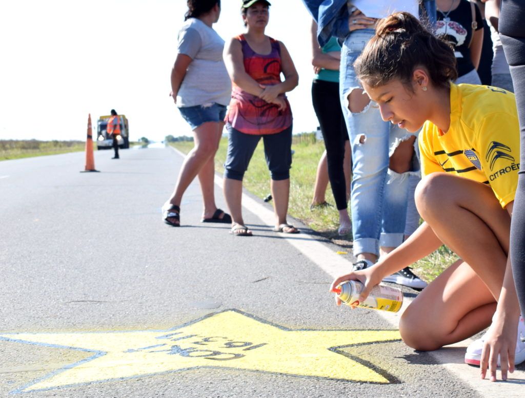 Con pintura, globos, lágrimas y dolor, sus más allegados repintaron la estrella amarilla en el KM 368 de la traza nacional. Al mismo tiempo, a la vera de la calzada, colocaron un cartel con una estrella dibujada y el apodo de la víctima.