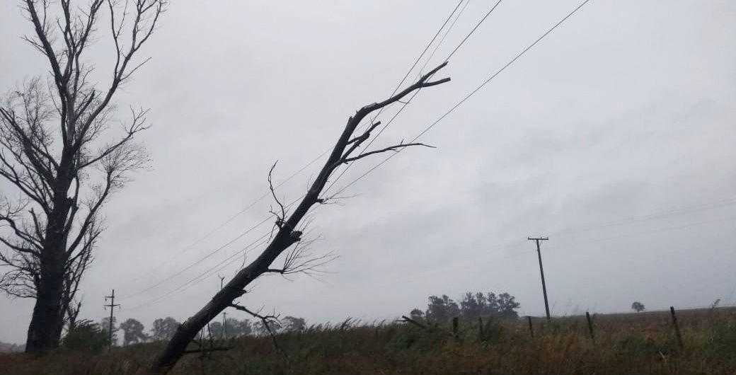 En la tarde de este martes en medio de la lluvia y la tormenta, la rama de un árbol cayó sobre la línea de media tensión entre San Genaro y Las Rosas, a la vera de la Ruta 65.