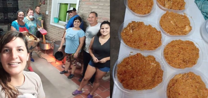 La semana anterior realizaron un arroz solidario y se repartieron alrededor de 50 porciones. Para el siguiente sábado se va a elaborar guiso para ser repartido por los vecinos de la localidad.