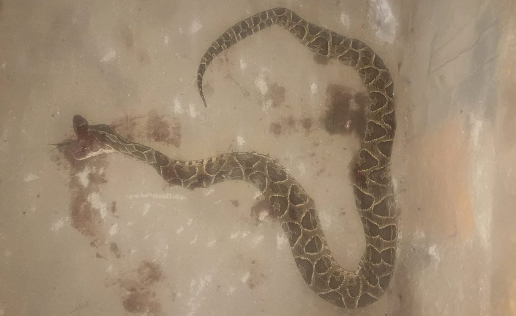 Quien la encontró fue un hombre de 73 años quien ingresó a su vivienda cerca de las 19 horas de este martes, divisó la yarará venenosa en una habitación y logró matarla.