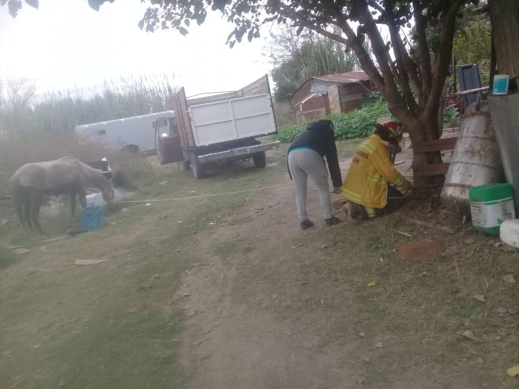 «Estaba enredado en su propia soga, quieto y acalambrado. Cortamos la soga con un cuchillo, lo desenredamos y luego tratamos de tirarlo hacia adelante haciéndole un lazo en el freno. Cuando sintió que se lo estaba ayudando logró pararse solo y lo ayudamos a salir a tierra firme», detalló Silvina en diálogo con Info Más.