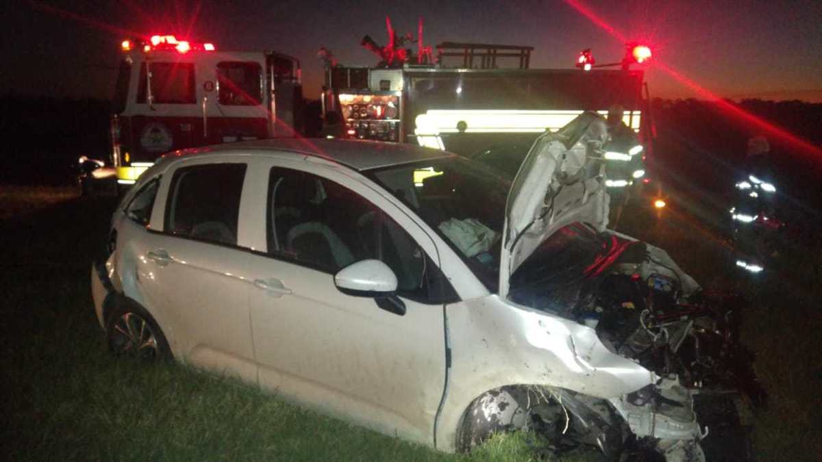 El siniestro se produjo sobre el KM 77, a la altura de la localidad de Barrancas, entre un auto y un camión, en la mano que va en sentido norte sur.