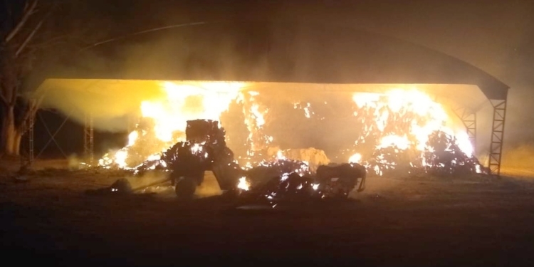 En horas de la madrugada de este miércoles las llamas tomaron por completo un galpón repleto de fardos en un campo entre San Genaro y Las Rosas. Bomberos Voluntarios trabajaron incansablemente hasta horas de la tarde para controlar la situación.