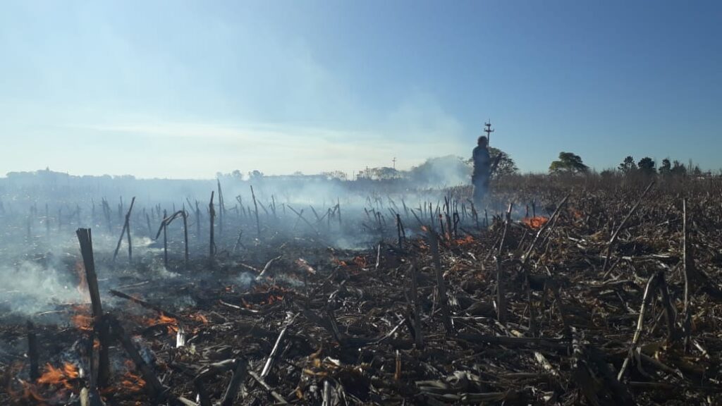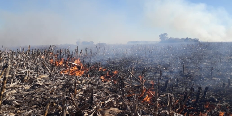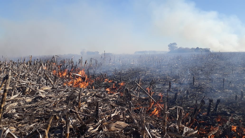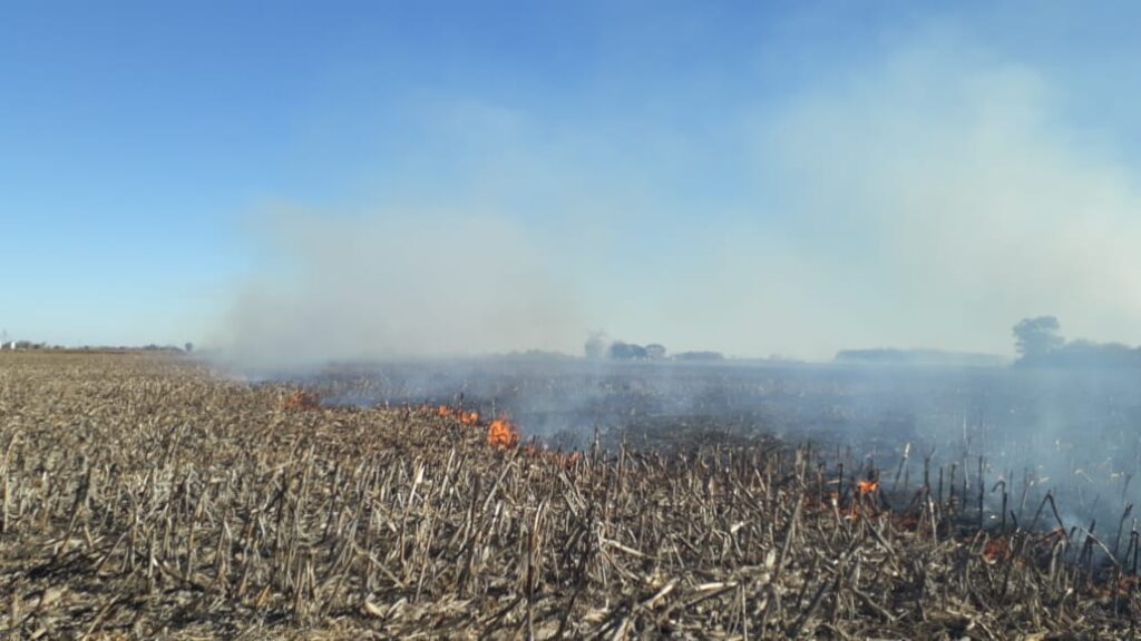 El hecho se produjo en un campo ubicado entre Maciel y Oliveros, en el cual el fuego afectó al menos a tres hectáreas de rastrojo de Maiz. El humo podía divisarse fácilmente a larga distancia.