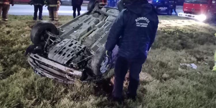 Allí, por causas que se desconocen y sin la intervención de un tercero, quedó tumbado el auto Suzuki Fan de una sanlorencina sobre el cantero central, con sus cuatro ruedas hacia al cielo.