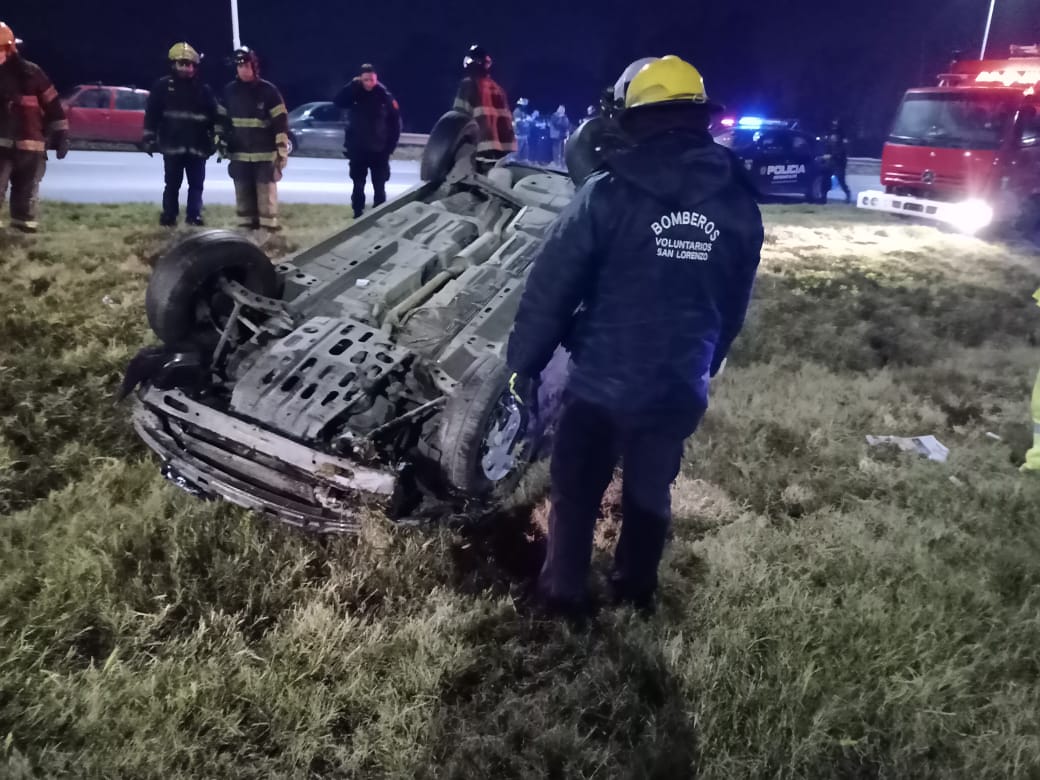 Un auto volcó y dio varios tumbos en la autopista Rosario Santa Fe. La joven conductora debió ser rescatada del vehículo y trasladada a un efector de salud.