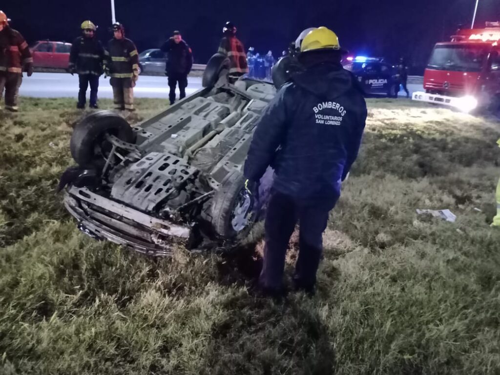 Bomberos Voluntarios y zapadores de San Lorenzo trabajaron en el lugar cerca de las 2 de la mañana, a la altura del KM 16 de la autopista Brigadier López.