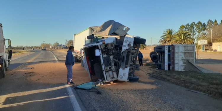 El siniestro fue sobre la traza nacional en el KM 86, yendo hacia la localidad de Centeno. En el lugar la calzada quedó reducida debido a la soja que quedó esparcida en una mano.