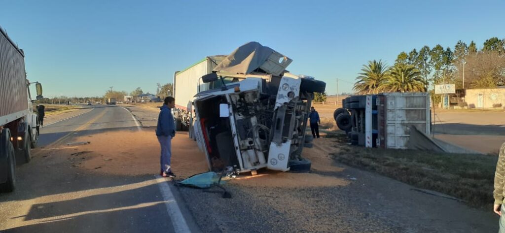 El siniestro fue sobre la traza nacional en el KM 86, yendo hacia la localidad de Centeno. En el lugar la calzada quedó reducida debido a la soja que quedó esparcida en una mano.