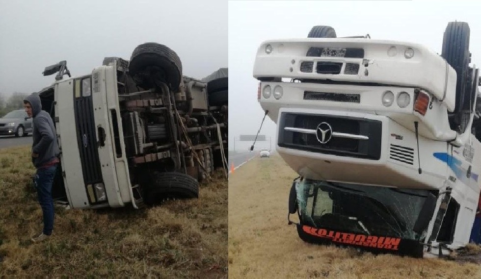 No hubo heridos por el siniestro, pero los camiones quedaron dañados severamente por el vuelco que llamativamente fue a pocos metros de distancia uno del otro, sin que choquen entre sí.