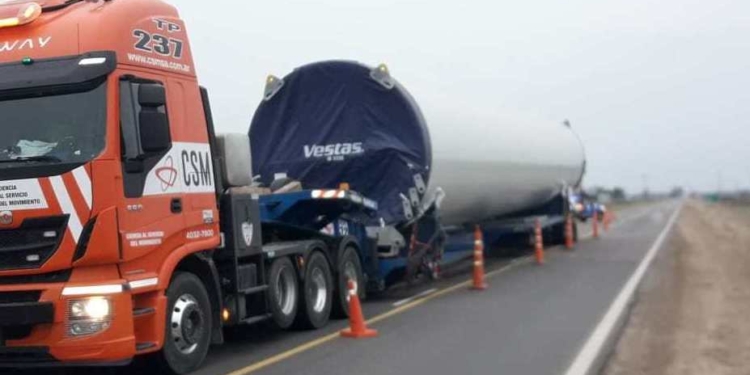 Un llamativo episodio se registró en horas de la tarde en la región cuando un camión debió detenerse en medio de la ruta mientras transportaba una base de generador eólico. El carretón que lo sostenía se desoldó, quedó literalmente clavado sobre la calzada, y ahora deberá esperar la llegada de una grúa.