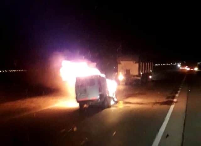 Allí circulaban una Fiat Fiorino y un camión en el mismo sentido cuando se produjo el siniestro por alcance. La camioneta fue tomaba por las llamas.