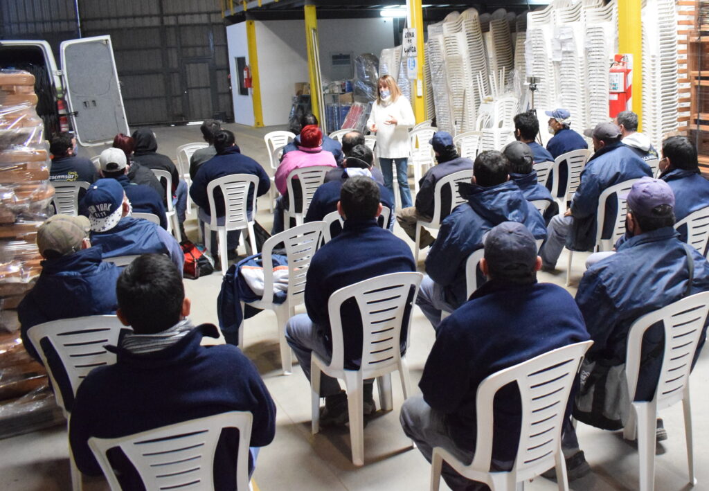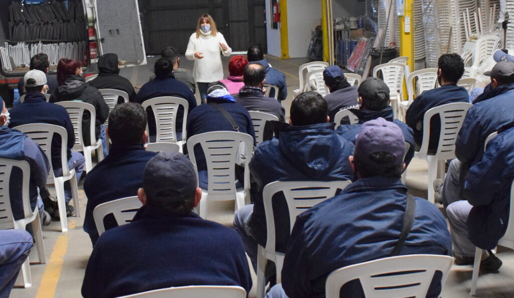 Cerca de 30 operarios finalizaron su turno este martes y se dedicaron a escuchar a la conductora y productora del programa radial «Camino a Casa», transitando los 20 años de prevenir antes que curar.